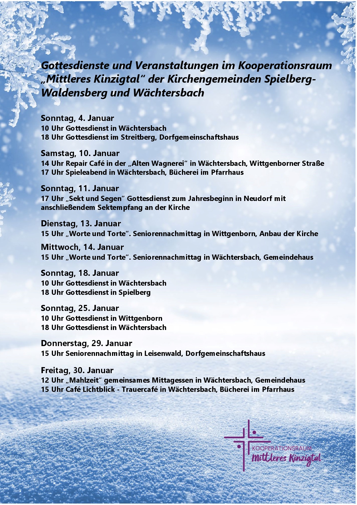 Gottesdienste und Veranstaltungen im Januar